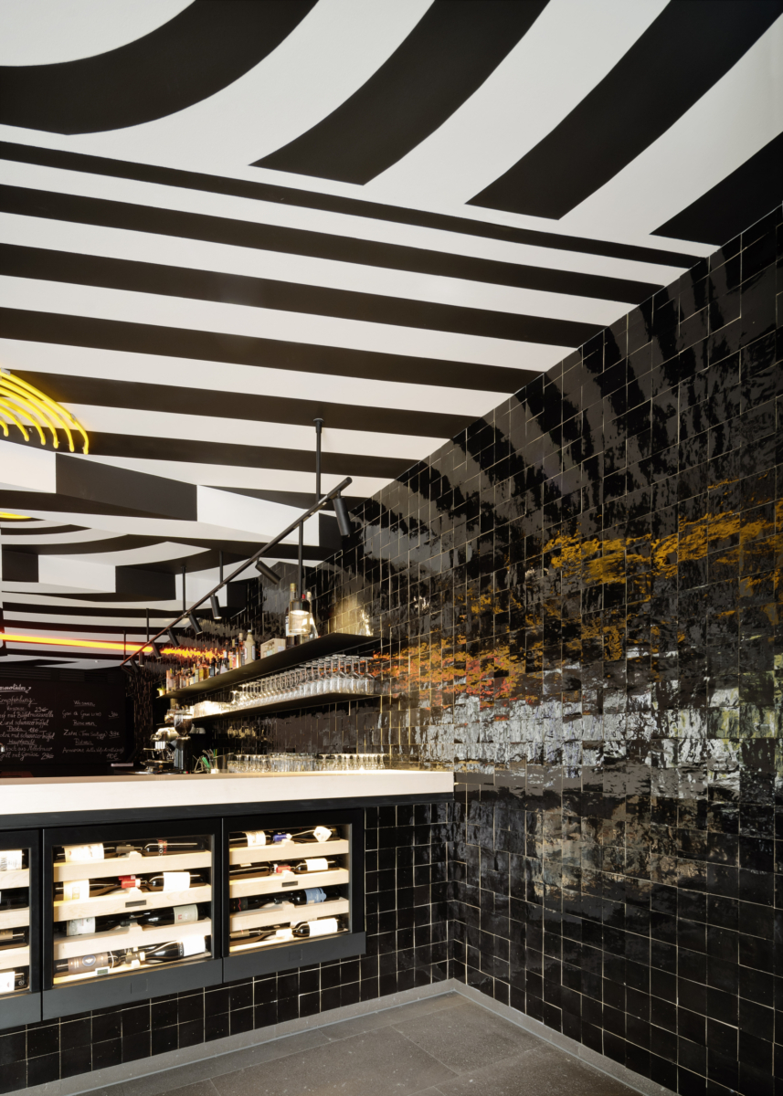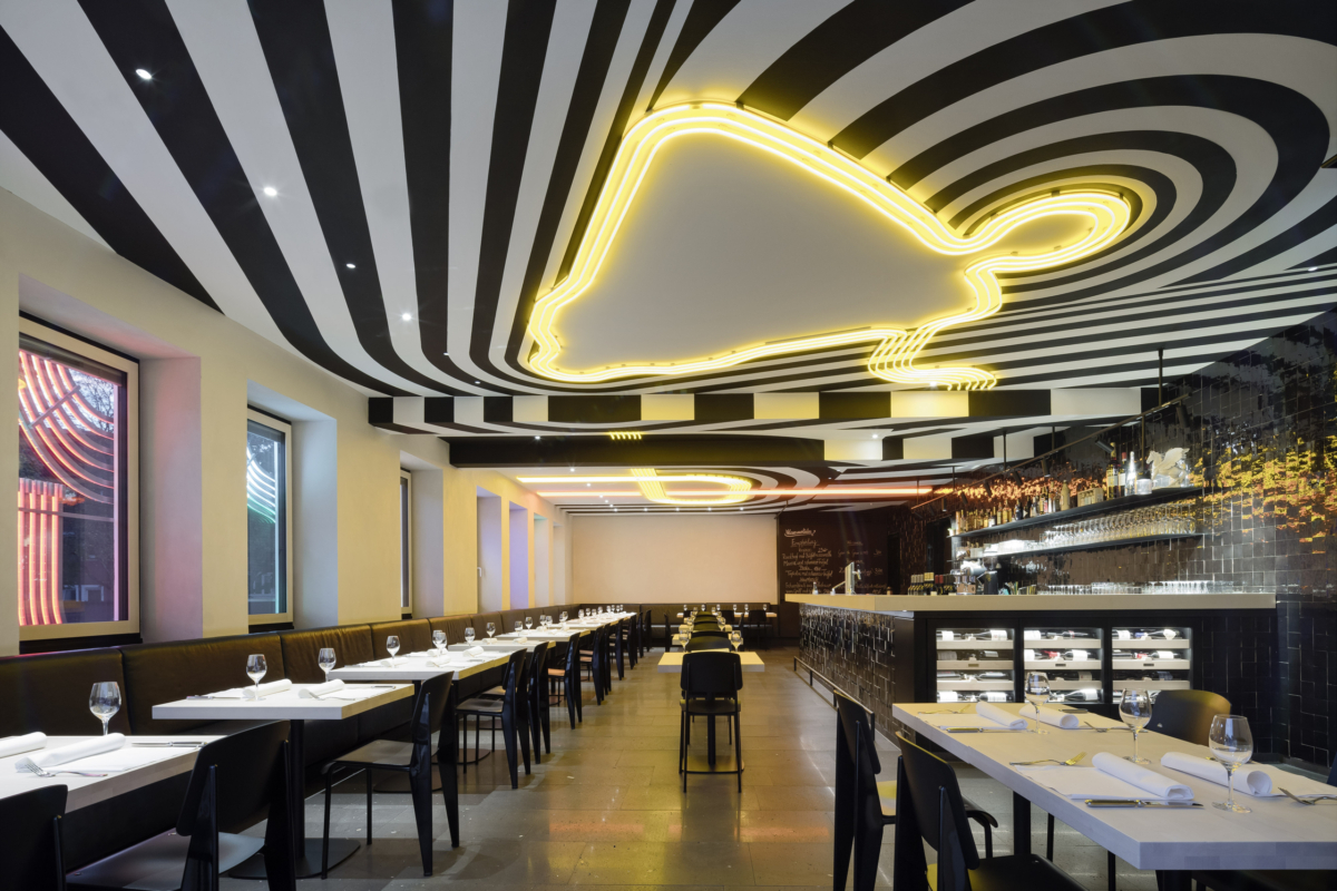 Das im letzten Quartal 2022 eröffnete Lokal „Wiesenauerläuten“ des Baustoffhändlers Kemmler in Stuttgart-Wangen sticht jedem sofort ins Auge. Wir sind sehr stolz, dass wir mit unserem Lichtkonzept für die Allgemeinbeleuchtung des komplett neu konzipierten Traditionslokals die außergewöhnliche Neon-Lichtkunst von keinem Geringeren als Tobias Rehberger untermalen durften. In enger Abstimmung mit den Architekten Lamott.Lamott lag die Herausforderung darin, mit nahezu unsichtbaren Einbauleuchten genug Licht auf die Tische der Gäste zu zaubern. Wir haben uns in diesem Fall für die DGA Downlights „Tono“ entschieden. Die randlosen Einbauleuchten wurden genauestens mit der schwarz-weiß gestalteten Decke abgestimmt und auch in diesen beiden Farben verbaut, damit die Leuchten komplett darin verschwinden. Außerdem kam die Leuchte Infra-Structure von Flos über der Bar zum Einsatz. Wer in Stuttgart einen fantastischen Italiener in absolut außergewöhnlichem Ambiente sucht, wird hier auf jeden Fall fündig.
